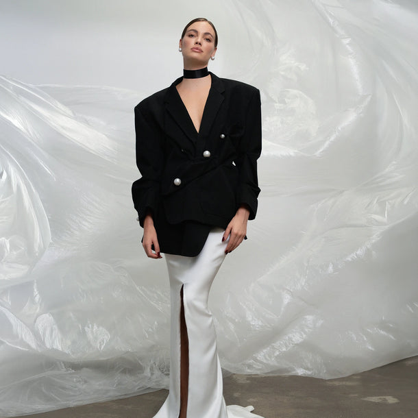 The ICON Bridal Collection by Nina Rajak celebrates strength, confidence, and contemporary femininity. Designed for the modern bride who moves beyond tradition, ICON redefines bridal wear through clean architecture, powerful silhouettes, and a minimalist aesthetic.